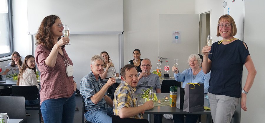 We said goodbye to Christine Schneidereit at a big farewell party with delicious food and lots of guests from across the campus. Alumni also came to celebrate Christine's last day at work. Christine, thank you very much for the great party. We will miss you, not only because work will be more difficult without you, but also because you were such a nice colleague. But we are happy for you and wish you all the best. Enjoy your well-deserved retirement and keep coming back to visit us.